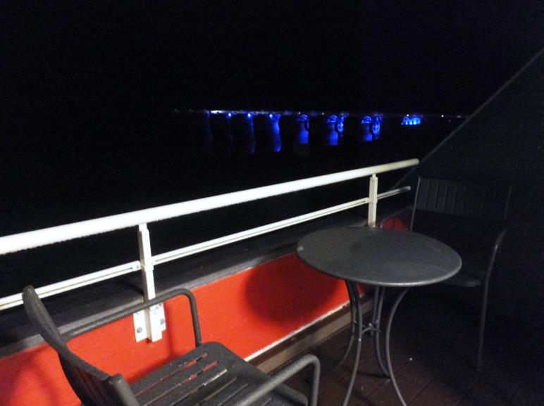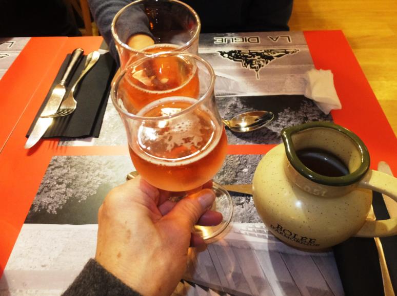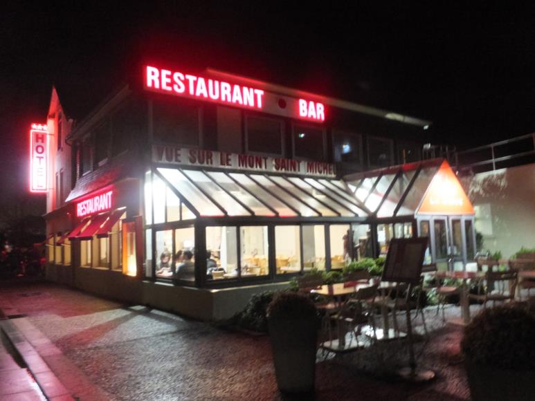 ホテルの部屋が割り振られ、別棟のレストランで夕食、ワイン片手に、モンサンミッシェルに「乾杯!」。