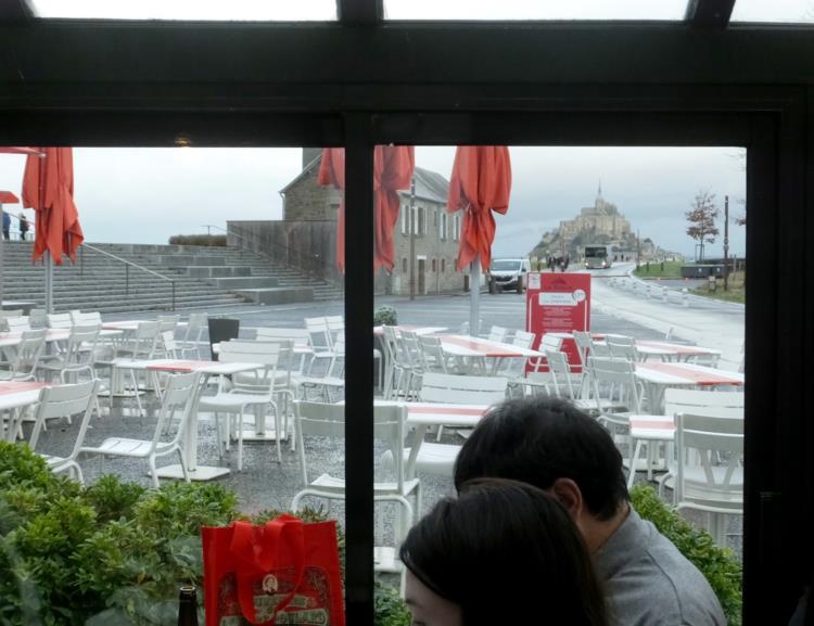 我々席は、ガラス天井が外に突き出たテラスで、モンサンミッシェルを眺めながら食事が出来ます。