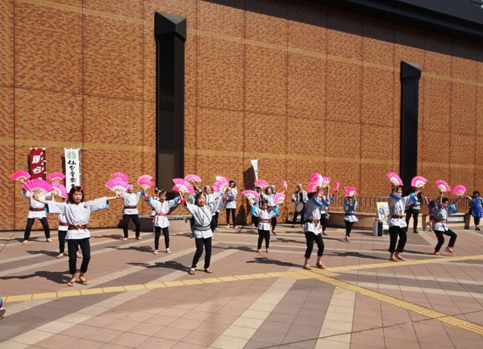 仙台駅に着くと、駅前で「雀踊り」が・・。