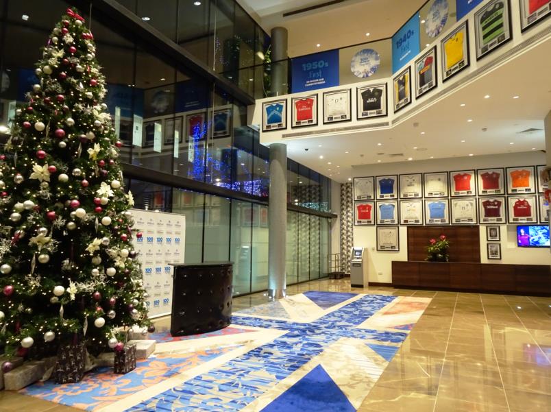 ラグビーの試合もできるようで、1階ロビーには各チームのユニフォームが沢山飾られています。