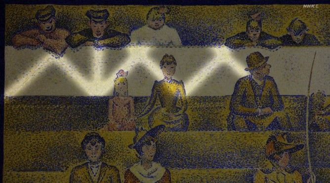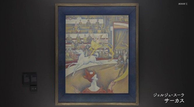 たとえば、手描きのデジタル画ともいうべき「点描法」を発明した ジョルジュ・スーラの《サーカス》(1891)。