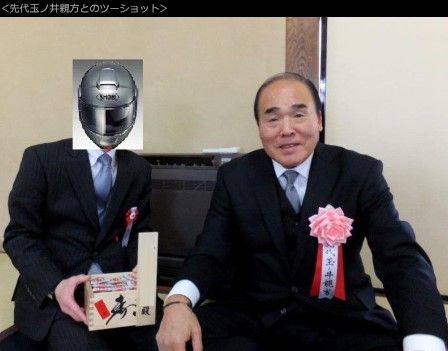 <今年2月3日撮影、玉ノ井親方と握手・ツーショットが実現>