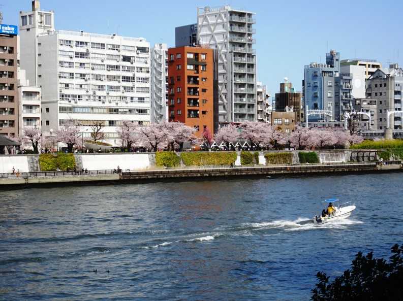 対岸の東京スカイツリーや、アサヒビールの金色の建物が、きれいに見えています、いい季節です。
