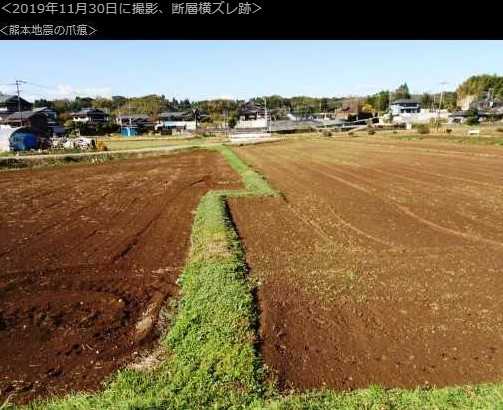 横ずれ断層の一つで、東西方向に最大2・5mズレてしまい、クランク状になった畑の境界のあぜを目の当たりにし、驚かされました。
