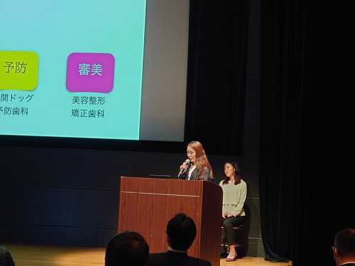 歯科医師の立場から、人間の臓器のうち唯一自身でメンテナスができるのが歯であるとし、洗口液を使用することも有用であることを説明。その後エムズ歯科クリニックの歯科衛生士である井田さん、山本さんが自宅でできる一次予防、歯科矯正など病気になる前にできる二次予防についてそれぞれ説明しました。