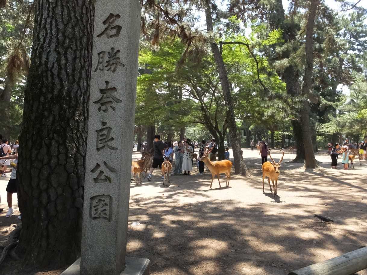 途中、鹿が自然に歩いていて、奈良公園まで続いています。