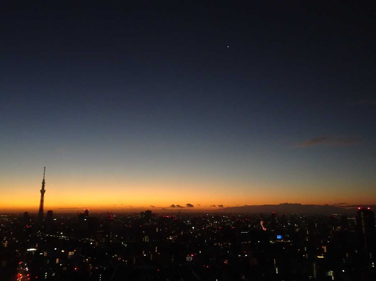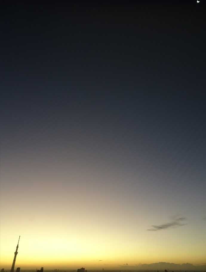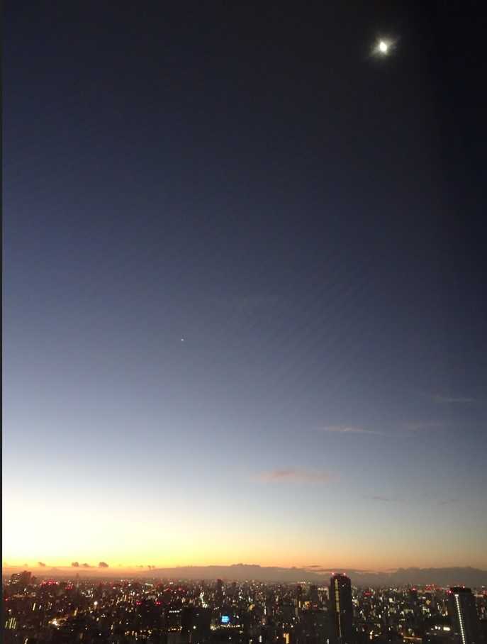 そして、三日月とスカイツリーの間には、金星、明けの明星が輝いています。