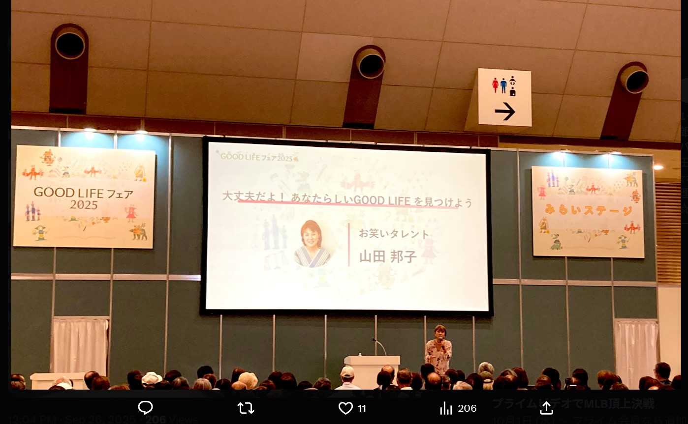 山田邦子さん、テーマは「大丈夫だよ!あなたらしいGOOD LIFEをみつけよう」です。