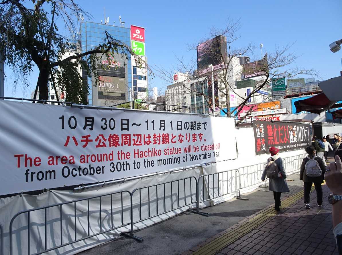 渋谷に着くと、ハロウィン対策でハチ公も封鎖されています。