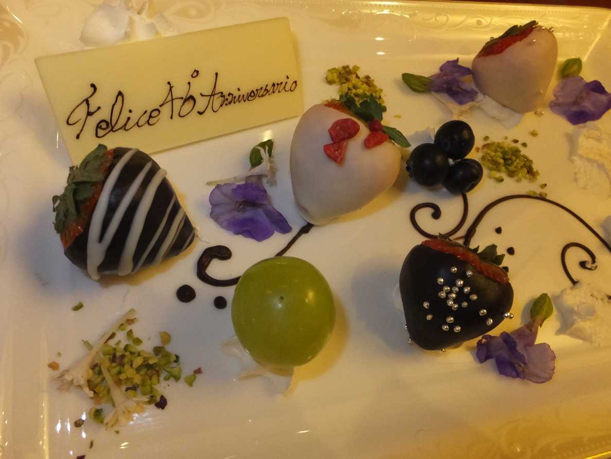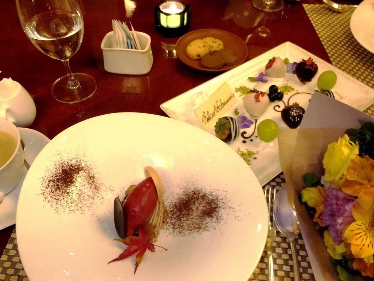 最後、デザートと一緒にテーブルに届いたのが、お祝いメッセージ入り特別プレートです。