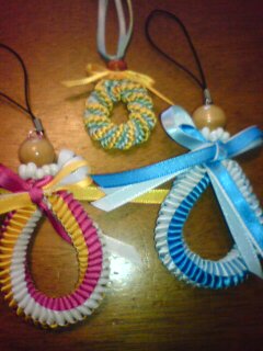 前々から頼まれていた、リボンレイのストラップがやっと完成しました春っぽい色合いで作ってみました。リボンレイの本2より、「No.36」という手編みのレイです。3本のリボンで6本の縞模様ができることから、ついた名前だそう。やる気になったら、夜の少しの時間ですぐ作れるのにね・・・リボン全色セット