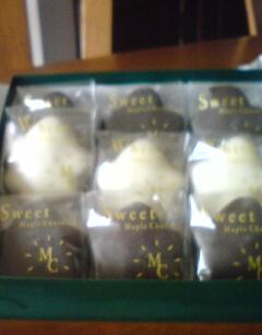 広島のお土産の定番といえば、もみじ饅頭ですが・・・もみじの仲間?にしき堂さんのメープルチョコレートが、広島出張に行ったダンナのお土産です。チョコのはチョコケーキみたいなのにチョコがコーティングされていて、ホワイトチョコのは中身がクリームもみじみたいで、その上にホワイトチョコがコーティングされていました。ホワイトが好みかな定番!広島と言えばもみじ饅頭ですが