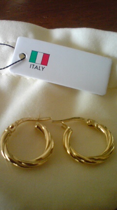 ピアスホールをあけた時、ちょっと高かったけど、ウノアエレのフープピアスを買いました。シンプルでとっても気に入って毎日のように着けていたのですが、とうとう片方なくしてしまいました・・同じようなものを街で探しましたが、シンプルなものってなかなかないんですよね・・・ってことで、楽天で探しました。イタリアンジュエリーをたくさん取り扱っているOEさんで、フープピアスを買いました。★2008 Summer SALE!★【イタリアンジュエリー】K18イエローゴールド スパイラルラインフープピアス素敵にラッピングされていて、手書きのお手紙までいただき、感激です。