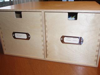 以前、ハワイアンリボンレイを作るのに憧れの全色セット! シングルサテン6mmx20m(41色入り!)をラッピング倶楽部さんで買いました。そのほかに3mmリボンのセットなども買ったのですが、そのリボンの収納に頭を悩ませていました。で、イケアで買ったこのボックスがぴったりでした。本来はCD収納ボックスのようですが・・・中身を書けるラベル付引き出しをあけると、こんな感じです。スッキリと収まりました。