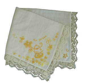 自分へのプレゼント・・・っていうわけではないのですが、頼んでいた布絵の具が丁度入ってきたので、さっそくハンカチに描いてみました。 ペヨ再登場です!写真じゃ白いハンカチに見えるんですが、実際はコーヒーで布を染めたので、ベージュ色です。何も考えずに描いたらお子様向けっぽくなっちゃいました。