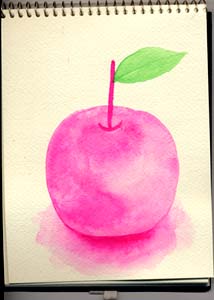 スケッチブックジャックしたりんご。水族館時、友の未使用スケッチブックを占領してしまったりんごです。 ・・・それにしても。またやっちゃったよー。今日、服裏返して着ちゃってた!!