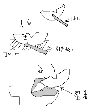 梨が口にくっついた!