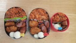 今日は、幼稚園お弁当の日でした!!火曜日と金曜日を、お弁当の日に選んだので朝が地獄です・゜゜・(/□\*)・゜゜・ちょ~手抜き弁当ですナゼ3個かと言うと1個は、3番目くんの朝ごはんですU^皿^U自分の、お弁当がないと怒るからです今、幼稚園から帰ってきて、制服を脱ぎダラダラしている1番目くんと、2番目ちゃんです☆