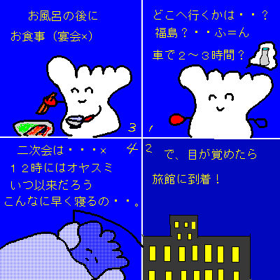 広島に行ったときにお好み焼を食べに行ったの。オーダーの時にソバ入れますか?って聞かれた。焼きそばの事だった・・・。そして食べるのにコツがいるね。他の客は綺麗に食べていたのにおいらとK君はぽろぽろ・・こぼしながら、よそ者ですって感じでたべてたの・あはは