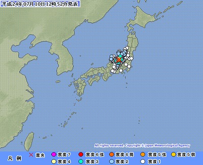 長野で大きな地震があったみたいです。平成24年07月10日12時52分 気象庁発表10日12時49分頃地震がありました。震源地は長野県北部 ( 北緯36.8度、東経138.4度)で震源の深さは約20km、地震の規模(マグニチュード)は5.0と推定されます。各地の震度は次の通りです。なお、*印は気象庁以外の震度観測点についての情報です。長野県 震度5弱 中野市豊津* 木島平村往郷*これは、今回の一連の太陽フレアおよび静止軌道電子の変化に関係しているように思われます。なお、今日もM2.1の中規模フレアが発生しています。引き続きご注意なさっていてください。なお、明日(今日?)のブログの更新は、出張のため、更新できたとしても夕方か夜になると思います。皆様に多くの幸がありますように! Some rights reserved by Leans
