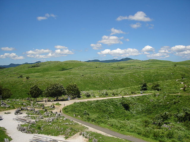 自然の中で自分を浸らせるというのは、とても大切なことだと感じています。とくに、都会で生活されている方なら、なおさらグラウンディングの必要があるように思います。私も都会育ちで、自然といえば公園ぐらいしかない所で育ちました。今は、うって変って、田舎暮らしです。人間、変われば変わるものだな~と思う今日この頃です。 昨日は、自然の中に出てきました。車で1時間くらいのところに、秋吉台というところがあります。ここは、石灰岩が堆積してできたカルスト台地なんですが、今から約2000万年前にできたとされているところです。スピリチュアル的には、何時代にあたるのでしょうか、ちょっとわかりませんが(笑)。でも、ここは結構ナゾのあるところなんです。少なくとも約500万年前からこの台地は造山運動の影響で隆起して陸地だったところなんですが、時代としては中期更新世(78万~12万6000年前)と呼ばれる時代よりも前の動物の化石がなぜか全く発見されていないとか、陸地だったはずなのに、ゾウやトラの化石と共に巨大なホンマグロの脊椎骨化石が産出したりしているところです。誰かが狩りをして運んだのではないかとも考えられなくもないですが、海までは直線距離で18kmもあったと考えられており、巨大な本マグロを果たしてどうやって運んだのかがナゾだったりします。 まあ、小難しい話はさておき(笑)、今日は写真で見られるような秋吉台というところに行って来たわけです。そこでしばらく散歩した後で梨ソフトクリームを食べてきました。バニラ、夏ミカン味もちょっと食べさせてもらいましたが、梨が一番おいしかったです。その後は、よく行く天宿という温泉宿へ。ここは、私見では、山口で一番よい温泉だと思います。泉質もそこそこ良いですし(もちろんエネルギーも強いです)、なんといっても露天風呂からの景色が最高です。一言で言うと、ありのままの自然の風景の中に、露天風呂を作ったといった感じでしょうか。山口へお立ち寄りの際には、ぜひ天宿へ(何の関係もないですが宣伝します(笑))。エネルギーの強い台地もそうですが、温泉の湯というのは、人間を強くグラウンディングさせてくれます。土地と強く結び付き、今ここにいる自分というのを強く感じさせてくれる瞬間があります。(Wikipediaより)