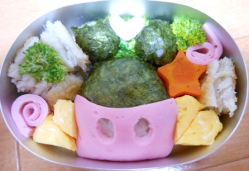 トトロの灰色は、今回はすりごまご飯。キャラ弁の本に載ってたやつ。 白いご飯と一緒にサランラップで形を作って、 飾り付は、スライスチーズとのり。木の幹は、ちくわ。食べやすく斜め切りして、またつなげた。 葉っぱは塩ゆでブロッコリー(スチームケースで)チキンソテーと卵焼きは、食べやすく小さく切った。ソーセージは、2~2.5cmに切って、 クッキー型のカーブを少しづつ使って、ハートとチューリップの形に切った。ちくわは、昨日の夕食に出したら、息子がパクパク食べてたから、急遽、お弁当に使うことになった。ソーセージは、切ってる途中で「同じ形は飽きたなぁ」って思ってなんとなく。すりごまご飯は、あまり好きじゃなかったみたいだから、次回は、違うものにしよう。楽天レシピで“お弁当”検索しようキャラ弁の顔パーツが簡単に!かわいい海苔パンチ。お弁当箱と一緒に。にこにこパンチ3[スリー]...価格:1,480円(税込、送料別)洗って繰り返し使えるシリコン製カップだからエコ。お弁当の彩にも♪彩り野菜カップセット/キャ...価格:980円(税込、送料別)【新生活応援!】弁当箱と一緒ににぎっ手みてみて/キャラ弁グッズ、お弁当グッズ、おにぎり型、...価格:980円(税込、送料別)【子育て】【幼稚園】【お弁当】