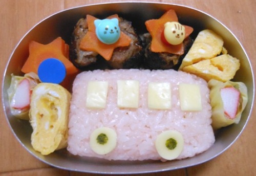 バスのピンクは、デコふりで色付け。窓、タイヤはスライスチーズ&のり。卵焼きは、1つは斜めに切ってハート型。 1つは新幹線の丸いピックを裏返しに刺してバス停にした。ハンバーグは、長細いのを作って3等分。人参グラッセは、シリコンスチーマーで温めて、 卵を焼いたフライパンのマーガリンの残りで軽く焼いた。 星型にして、バス停の上に、3個重ねて、 薄く切ったのを2個、ハンバーグに乗せて、動物ピックを刺した。左右の隙間には、カニカマのキャベツ巻き。 シリコンスチーマーでチンしたキャベツにマヨネーズを塗って、 カニカマを巻いてカットしたもの。デコふりかけは、初登場。100均で買ったやつで、鮭の味で美味しいし、色がきれい今まで買おうか、何度も悩んだけど、味が保証できるから、良かった。今日のシリコンスチーマーには、お弁当用のにんじん&レタス、夕飯用のじゃがいも&にんじんこれを全部入れて温めた。今日は息子のお弁当だけだったんだけど、シリコンスチーマーは、少量すぎる野菜だと、なんか、上手くいかなくて、それなりの量を入れるようにしてる。楽天レシピで“お弁当”検索しようキャラ弁の顔パーツが簡単に!かわいい海苔パンチ。お弁当箱と一緒に。にこにこパンチ3[スリー]...価格:1,480円(税込、送料別)洗って繰り返し使えるシリコン製カップだからエコ。お弁当の彩にも♪彩り野菜カップセット/キャ...価格:980円(税込、送料別)【新生活応援!】弁当箱と一緒ににぎっ手みてみて/キャラ弁グッズ、お弁当グッズ、おにぎり型、...価格:980円(税込、送料別)【子育て】【幼稚園】【お弁当】