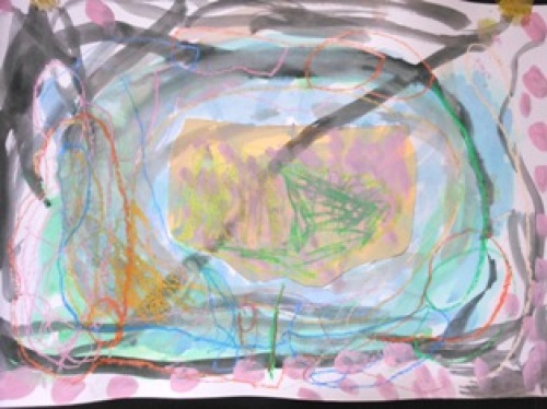 今日は、息子(3歳11ヶ月)と、絵画教室の見学に行って来た。きっかけは、去年の2学期。去年の9月から、幼稚園のカリキュラムの中で英語を始めたのと、家でいつも歌を歌ったり楽器で遊んだりしてるから、ヤマハ英語教室に行ったら面白いんじゃないかと思って、息子に、ネットで動画を見せたいろんな習い事があって、幼稚園の友達は、こんなことしてる。って教えてあげると、「絵が上手になりたいの」突然、思ってもいなかった言葉が、息子の口から出てきた。サッカー観戦の影響で、年長さんからできるサッカーをやりたがってるのは前からで、音楽が大好きだから、音楽系の習い事に興味を持ちそうだと思ってたのに、自分から絵がやりたいと言い出した。確かに、家でお絵かきはするけど、おもちゃで遊ぶことの方が多いし、絵も、途中でぐちゃぐちゃにしちゃうことも多々でも、上手になりたいらしい。年中さんからやらせようと思って、これまでに何度か意思確認したけど、やっぱり、絵を習いたいのは変わらないみたい。ネットで検索しても出てこないから、幼稚園のママたちといた時に話してみたら、近所の幼稚園の美術教室が、他の幼稚園の子でもできるとか先週、また、いろんな習い事がある話をして、最終確認して、変わらなかったから、問い合わせ今日、見学に行く約束をした。乗り気か心配だったけど、今朝、幼稚園に行くときに、「今日先生に、絵のところに行くって言うね」って言って来た。「今日先生に、○○するって言うね」「今日先生に、昨日○○したって言うね」息子がそういう時って、嬉しいことや楽しいことがあるとき。楽しみにしてるみたいだ。幼稚園に迎えに行くと、いつもは最後まで園庭で遊ぶ息子が、文句も言わずに幼稚園を出た。行く気満々みたい14時からのフレックス制のため、14時に幼稚園が終わったら、着替えて行って、参加すればいいのが、良いところ幼稚園の美術室に入ると、床にビニールシートを敷いて、画板をその上に並べてあって、4人の子が、絵を描いてた。先生が来て、息子を誘うと、息子は前に進まない。初めて会って、ずんずん行くタイプじゃないから無理か(笑)私が隣に座れる、一番端の画板でやることになった。始めに、B3画用紙をもらい、今日の日付のはんこを押した。「名前はまだ書けないよね」先生の言葉に「うん」と頷く息子。書けるけど、今日はまだいいかすると、はんこの隣を指して、「ここに丸描いて」息子が丸を描くと、「これが名前の代わりね」画用紙を裏返すと、今度は、色画用紙を持ってきた。それを半分に折って、「ここにぐるって線描いて」言われた通りに息子が描いた。「線の通りにハサミで切ってみる」息子が「やる」っていうから、試しに持たせてみた。普段、家では、線の通りに切れないから、無理かと思ったら、結構上手い食事の時とか、普段の生活でも、幼稚園だとやるのに家だと甘えて、「できない~」とか言うけど、遊ぶ時も甘えてたんだね、上手でびっくりこれで、左右対称の形が出来上がった。「これ見ると、何か見えてくる」それを画用紙に貼って、そこから絵を描くみたい。先生の口添えで、その形は木になって、クレヨンで木にぐるぐる描いて、その下に、幹を描いたそのあと「周りに好きなものを描いていいよ」って言うと、息子はクレヨンで線を描き始めた。「違う色も使ってみる」すると、息子は、いろんな色を手に取っては、線を下記始めた。「今度は絵の具を使ってみようか」絵の具は、自分で好きな色を取りに行く。先生と一緒に行って、好きな色を取ってきた。自分の好きなように、色を塗っていく。「今度色変える」先生がそう言って、一緒に新しい色を取りに行って塗る。次に、同じ年の女の子に、「新しい色、取りに行くの教えてあげて」って言う。恥ずかしがりながらも、女の子が連れて行ってくれた。まず、筆と入れ物を洗う。「どれにする」息子は答えない。。。男の子が「何言ってるかわかんないよ」女の子の言った語尾がビミョーなことを突っ込む。また聞くと「むらさき」って答えた。先生が「紫は無いから、作らないとね。 紫ってどうやって作るんだっけ」女の子は、あれっていう風な表情。先生が行って手助けして、持ってきた。そのあとは、息子が取りに行くのを、先生が見てた。「周りを黒くしてみよう。」そう言って、黒を取りに行って、黒を塗った。「次の色にする」今度は、息子が一人でやってみたピンクを持ってくると「てんてんって描く方法もあるよ」先生に言われて、筆を落としていく。そうやって、絵が完成した。次の指示出さないと、いつまでも同じ色を塗ってたけど(笑)どうにか完成ドライヤーで乾かして、丸めて輪ゴムで留めてもらった。先生が、置いてある絵を出してきて、最近の作品を見せてくれた。「2013」と大きく描いて、そこから絵を描いたもの。2013年だから、紙に点を13個描いて、その点と点を線でつなげてみて、それを