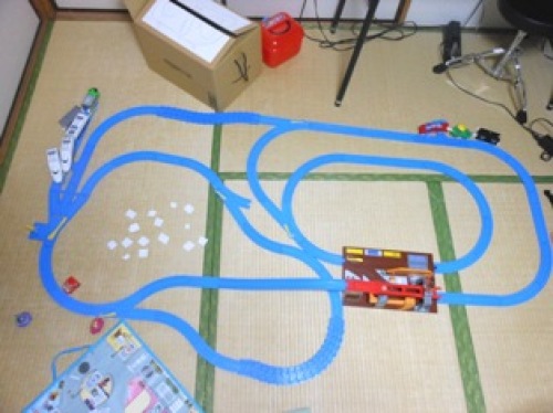 いつも、朝食の後、洗濯や掃除で、息子(3歳10ヶ月)と遊んであげられないから、息子はその間、遊ぶ準備をしてる。今日は、プラレール幼稚園に行く前にちょっと遊んで、帰ってから、本格的に遊ぶ。今日は、今までやらなかったことに挑戦トーマスの上り坂の下を、線路が通る。息子が、そこにこだわって作ろうとしてた。息子が自分がこだわりたい部分を作って、あとは、私が繋げて完成させてあげる今日出来たのが、これ。低いから、電車が通れるか心配だったけど、一番高い部分を通せば、ギリギリ通れた息子は、すごく気に入ったみたいで、「明日も同じの作りたいから、写真撮る」って頑張った。ただ、広い場所を使うから、高い位置から撮らないと、全体が入らない息子には無理だから、私が撮ってあげると、「ママすごい何で上手にできるの」興奮して聞いてきた。「ママはおっきいからね」トーマスの後ろには、工事の石なんかを運ぶ車両をつけてる。トミカのメガトンダンプについてたもので、プラレールに繋げて遊べるようになっているもの。息子はそれで、手紙を運んでる今日は、その手紙をたくさん作った息子は、一昨日、電車の写真を大量に撮ったように、また、連射始めた。今日は、全部同じような感じ。でも途中、1枚だけ、ぼやけた写真が・・・昨日撮影した電車http://plaza.rakuten.co.jp/imoimoco/diary/201302050002/息子のお気に入り アンパンマン つなげてくねくねロード コロコロアンパンマンごうドライブ【ジョイパレット】価格:6,082円(税込、送料別) 12月31日9時59分まで【ポイント3倍】!【送料無料】タカラトミープラレール きかんしゃトーマス...価格:4,180円(税込、送料込) 細かいサイズの基本ブロックが豊富に入った青いバケツで楽しくレベルアップ!【送料無料】レゴジ...価格:3,030円(税込、送料込)【子育て】【3歳】
