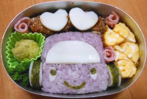 バスは、デコふりで紫に。 窓は、かまぼこ。ラップで形を握る時に、一緒に握った。 目は、かまぼことのり。かまぼこは、マヨネーズで貼り付け。 目と口ののりは、のりのカッターで切ったもの。 タイヤは、かまぼこを子供用のシロップの薬の計量カップでくりぬいて、 長細く切ったのりを巻いた。ハンバーグは切って一番上に並べた。ハンバーグの上には、薄いハートのかまぼこ。卵焼きは、小さく切って右側に。左のカップの中は、さつまいものマッシュを丸めた。その下の隙間にブロッコリー。ハムは、くるくる巻いて、3箇所に差し込んだ。今日は、息子が今までのお弁当の写真を見ながら選んだ。ご飯の上の小物は、基本的にのりかチーズで、動きにくくしてたんだけど、今日は、かまぼこをマヨネーズで貼るのに挑戦。剥がれないか、ドキドキ帰ってきた息子に聞いてみると、どうやら大丈夫だたらしい楽天レシピで“お弁当”検索しようキャラ弁の顔パーツが簡単に!かわいい海苔パンチ。お弁当箱と一緒に。にこにこパンチ3[スリー]...価格:1,480円(税込、送料別)洗って繰り返し使えるシリコン製カップだからエコ。お弁当の彩にも♪彩り野菜カップセット/キャ...価格:980円(税込、送料別)【新生活応援!】弁当箱と一緒ににぎっ手みてみて/キャラ弁グッズ、お弁当グッズ、おにぎり型、...価格:980円(税込、送料別)【子育て】【幼稚園】【お弁当】