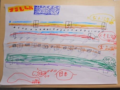 おもちゃは、ダンボールに入れているものが多い。おもちゃや収納場所にサイズを合わせられるし、自分で好きなデザインにすることが出来る。プラレールを入れてる箱は、ダンボールで作ってあって、上に、息子(小学校2年生)が小さい時に描いた絵が貼ってある。もうボロボロになったし、だんだん増えてくるから、入らなくなってきたしで、新しくすることにした。前回は、乗り物の絵ばかり描いてる息子に、私が言って描いてもらったんだけど、また、息子が「上の絵を描きたい。」って言うから、お願いした。前回より実力のあることを見せたかった息子は、図鑑を見て描いてた。最後に、前のものと、今回のものと、記念に並べて撮影した。息子のお気に入りタカラトミー ★ポケットモンスター ポケでるガチャ【特典・キャンペーン対象外】プラレールアドバンス W7系北陸新幹線かがやき IRコントロールセットプラレール・トミカと遊ぼう!DX踏切ステーション :タカラトミー05P07Feb16