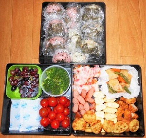 今日は、息子(小学校2年生)の運動会。私がお弁当の準備して、パパが場所取り。大きいお弁当作りって、普通に思うより時間がかかるから、事前にできることはやって、当日やることも、「オーブンレンジ」「電子レンジ」「詰めるだけ」「作るもの」4つの項目に分けて書いた、A4の紙を、冷蔵庫に貼っておいた。思えば、運動会の弁当作りは、大変な時が多かった。幼稚園の年少は、午前中のみで、お弁当無し。年中は、悪阻で、1週間前に、米が食べられるようになった時で、貧血で、少し立ってるだけで、くらくらして、立ってられない状態。でも、普段キャラ弁作ってたから、単純に量が増える計算でやったんだけど、思ったより時間がかかって、洗い物はせず、洗濯物も途中状態で、ギリギリに到着した。年長の時は、生後半年の娘がいる状態だから、前年より、時間に余裕を持ったもの、やっぱ大変。去年は、前日に、出来るだけ洗濯物もやって、お弁当作りに取り組んだ成果があって、1歳になったばかりの娘がいて、ちょっと大変だったけど、洗い物の片づけも洗濯物も終わらせて行くことができた!そして今年。前々日から熱が出る(^^;まさかの体調不良。だけど、当日は、薬が効いてれば大丈夫な状態(^^)v今度は、ゴミ捨ての準備も、前日に少しやったし、紙に書いたのもあるし、娘も2歳になって、放っておけたし、出来たものをどんどん奪いに来るから苦労したものの、かなりスムーズに出来て、ばぁばが来る時間より、余裕を持って準備が出来た♪完璧だ!!!1番に出発したのはパパ。学校にレジャーシートを敷きに行った。去年、甘く見てて、7時半に行って失敗したから、7時に行くように起こしたんだけど、パパは準備が早いから、6時45分に出発した。去年は、日向になっちゃって、すごく暑かったから、今年は日蔭を狙って敷いた。結果的には、午後になると、だんだん日向になってきちゃって、暑かった。来年は、あと1歩でいいから、早くすれば完璧!2番目に出発したのは息子。親と一緒に出る人も多いんだけど、ばぁばが見に来るのに、うちは駅から学校の間の通り道だから、うちに寄って、荷物を置いてから一緒に出ることにしてるから、息子には先に行ってもらった。去年は、友達のママに一緒に連れて行ってもらったんだけど、周りに親と一緒に歩いてる人が目に入って、寂しがると可哀想だから、ばぁばが来るのを待って一緒に行くから、後で出るね。って説明した。特に私が言わなくても、電車に1時間乗って来るばぁばが、朝早く家を出なきゃいけないことに気づいて、息子はすぐ納得した。ばぁばが来て、また、一瞬人見知りした娘と一緒に出発。レジャーシートを敷いた場所に行って、少し休憩。トラックの周りは、生徒が座って、あとは立ち見+歩く人で、ギリギリのスペースしかないから、レジャーシートを敷いていいのは、体育館の裏、校舎裏、遊具のところなど、限られてて、直接見るんじゃなくて、休憩とお弁当のためにある場所。私たちは、校舎の裏の、校庭に出やすい位置。開会式が始まる時間に、校庭に行った。