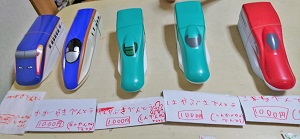 お盆に新幹線弁当を食べて、また、新幹線のお弁当箱が手に入った。昨日の夜、息子(小学校2年生)は、ままごとセットとお弁当箱を出して、中におかずを入れて、値段表を作って、お弁当屋さんを作って、おもちゃお金で買って遊んでた。今日も、息子は同じことをやってた。今日は、娘(2歳4か月)相手に売ってて、娘が買って私のところに持ってきて、一緒に食べて。それを繰り返してた。娘は、お客さんをやってたけど、お店屋さんも気になってたみたいで、途中、息子が別のことをしてる時に、お店屋さんの位置に座って、私に言った。「ママ、ふーきーなーとってー。」好きなのを取って。って意味らしい。選ぶと、アンパンマンのレジでピッてやって、私に渡してきた。私が食べ終わると、また、「ママ、ふーきーなーとってー。」最近、大抵のことは話すんだけど、まだ、上手に話せないところが可愛い♪