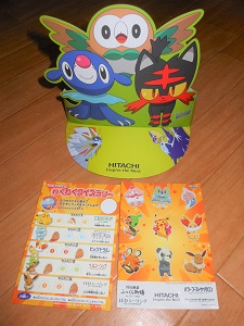 今日、息子(小学校2年生)は、パパと久しぶりにプールに行ったあと、そのまま、家電量販店に行った。結構、休みの日にイベントをやってる店で、今日は、ポケモンクイズラリーをやってた。これが、今日のお土産。他に、入浴剤とウェットティッシュももらってきた。