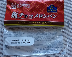 神戸屋「板チョコメロンパン」メロンパン大好き見つけたメロンパンはとりあえず食べてみる。食べる前に、メロンパンの写真を撮るのを忘れちゃったけど、メロンパンの上から、大きな板チョコが、包丁を入れるように刺さってる、斬新なメロンパン。皮もパンもクリームもチョコで、そこに板チョコが追加されたもの。板チョコもそのまま楽しめて良かったけど、若干、食べにくさもあった。でも、美味しかった♪冷凍のメロンパン生地冷凍パン生地 KOBEYA メロンパン 85g×8【楽天スーパーSALE限定クーポン発行中】価格:811円(税込、送料別) (2016/12/5時点)メロンパンの型【パン型】メロンパン型【ポリプロピレン】貝印価格:356円(税込、送料別) (2016/12/5時点)美味しいスイーツ探そう今日はもうやった?ラッキーくじ【パン】【菓子パン】【メロンパン】【おやつ】【スイーツ】