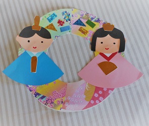 今日は、子育て支援センターの、工作の日。なんだかんだ、タイミングが合わなくて、久しぶりだと思う。白い輪っかに、和紙折り紙?を切ったものを張る。輪っかの4分の1の大きさだから、好きなのを4枚選んで貼って、台紙が完成。お雛様とお内裏様は、バラバラなものを、のりで組み立てて、丸い台紙に貼り付けた。最後に、キラキラの小さな部品があるから、輪っかに好きなように飾って完成!見本は、全体的に数枚貼ってたんだけど、娘は上半分にたくさん貼って、大満足な様子だった。今日も部屋で遊んで、園庭にも出たけど、風が強すぎて、一通りの遊具で遊んで帰った。