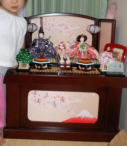 節分が終わったから、今日、ひな人形を出した。娘(2歳9か月)が昼寝してて、息子(小学校2年生)が外に出てる間に。息子は「やりたかった」って怒るだろうけど、これが一番スムースで時間とらなくて、何より私が楽だから(笑)家に帰ってきた息子は、珍しく、文句を言わなかった。今日はパパとカラオケやってきた直後だし、レゴで大きな家を作ってる途中だから、満足なのかもしれない。去年も一昨年も、娘対策に、こたつテーブルを部屋の角に置いて、その上の角に、ひな人形セットを置くという、見栄えより、人形たちの安全を考えた置き方だったんだけど、今年は、普通に下に置いた。「触っちゃだめだよ。見るだけだよ。」そう言ったら、ジュース飲みながらいい子に見てた。ただ、飲み物は危ない。。。「飲み物飲むなら下がって。こぼしちゃうでしょ。」「わかったよー」娘は後ろに下がって見た。1ヶ月、良い子にしててくれるかな?