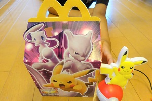 今日は娘(幼稚園年中)の浴衣を買うついでにマックに行こうとしたけど、そこは、自転車じゃないといけない場所。雨だったから、近くの店舗に食事だけしに行った。今回はポケモンだから行ったんだけど、娘はマクドナルドのセットの方に興味を持った。ポケモンはけん玉。シールブックもついてた。マックは肉を焼くグリルだった。マックはセットを作る紙もあったから、マクドナルドごっこをして遊んだ。