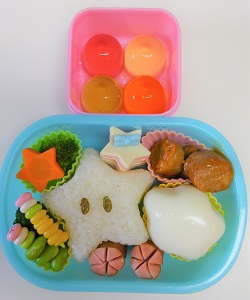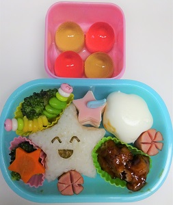 今日のお弁当は、きらきら星弁当。「後で説明するね」って言われて説明を聞くと、「星がいっぱいあるの」それだけだった。大きい星は、白いご飯にのりで装飾2番目に大きい星はゆでたまご真ん中の上に星形のハムとチーズのミルフィーユ左上にはブロッコリーと星形にんじん左下にはブロッコリーと枝豆、コーン右上にはミートボール下には飾り切りウインナーデザートはフルーツゼリー楽天レシピで“お弁当”検索しよう抗菌シート お弁当用 6×10cm 40枚入ミッキーマウス ウインナーカッター LWC1(SKATER/スケーター) (弁当箱 水筒 まんまる堂)海苔パンチ にこにこパンチ パート3【ゆうメール対応】ラクラクママ おかしなピックス 8本入り かわいい動物がスイーツに変身!【子育て】【幼稚園】【お弁当】