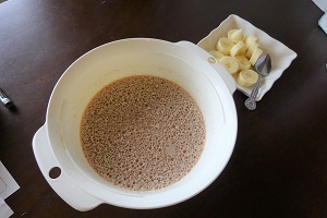 土曜参観の振り替えで、今日は息子(小学校5年生)が休み。晴れてたらマリンタワーに行きたかったけど、1日雨だから家にいることにした。息子はバナナとココアのプリンを作ってみたいようで、ネットで材料を入れる割合を見てたんだけど、バナナは中に入れなくてよい。ってことになった。「ババロア」とかもおいしそうだよね」って言ったら、息子はババロアを知らないけれど気になったらしい。でも調べると、ババロアには生クリームが必要。さらにムースも調べてみると、ババロアにメレンゲを足した感じだと分かった。大雨の中生クリームを買いに行く気はないから、メレンゲを入れたココアプリンを作ってみることにした。で、できたのがこれ。めっちゃ表面が泡立ってるプリン(笑)これを自分で好きな量取って、バナナを載せて食べた。味は美味しかったから、息子は大満足。バナナが嫌いな娘(幼稚園年中)もバナナを食べてた。