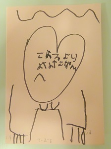 今日は、帰りに幼稚園で作った父の日のプレゼントを持って帰ってきた。ちゃんと眼鏡をかけたパパになってた。パパの髪の毛は短いけど、絵の髪の毛は長かった。