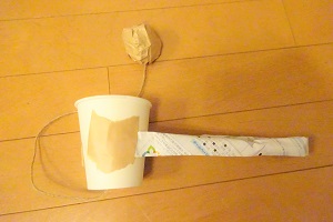 学校の宿題で、けん玉の作り方を調べる。ってのを、1週間くらい前にやってた。グループでいろいろやるみたいで、けん玉の作り方を調べる係だった。数日前に、けん玉を作ってみたい。って言うから、ただ家で試しに作るのかと思ったら、学校に持っていくものだった。みんな、どんどん先に進めてて、家で作ってきてもいい。って言われたから家で作ったらしい。学校に持ってくなら、ガムテはさみで切るとか、もっときれいに作れば良かったのに(^^;