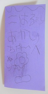 娘(幼稚園年中)は今日も友だちにお手紙。この前出したばかりの男の子に出すって言う。「まだあまり渡したことないから書くよ」「あまり渡してなくてもこの前書いたばっかだからやめなよ(^^;」で、クラスが別々になったけど今でも仲良しの友だちに書いた。ちなみに、友だちに手紙送りまくってるけど、私に来る手紙の数はもっと多い。。。手紙以外に絵も書いてるし、字も書いてるし、とにかくよく何かを書いてる。