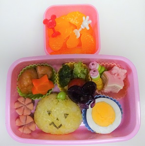 今日は幼稚園でハロウィンをやる日。今日が一番ハロウィン弁当にふさわしい日だ。「あまり食べられない」って言うから、ちょっとスカスカにした。小さい方の弁当箱に戻した方が良かったかな?かぼちゃのお化けは、カレーふりかけご飯(カレーの部分のみ)に海苔と枝豆で装飾左下には飾り切りウインナー左上には唐揚げと星形人参真ん中の上にはトマトとブロッコリー右上には星形のハムとチーズのミルフィーユ、コーン、枝豆右下にはゆで卵(半分)デザートはみかん楽天レシピで“お弁当”検索しよう抗菌シート お弁当用 6×10cm 40枚入ミッキーマウス ウインナーカッター LWC1(SKATER/スケーター) (弁当箱 水筒 まんまる堂)海苔パンチ にこにこパンチ パート3【ゆうメール対応】ラクラクママ おかしなピックス 8本入り かわいい動物がスイーツに変身!【子育て】【幼稚園】【お弁当】