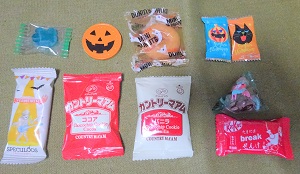明日はハロウィン。娘(幼稚園年長)が仲の良い友だちにお菓子をあげたい。って言うから、友達2人とお姉ちゃんの分、合計4個用意した♪明日会えるかな???帰りに園庭でゆっくりできないと、タイミングが難しい。