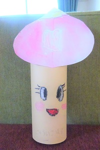今日は、幼稚園の製作の「きのこ」を持って帰ってきた。傘の色は絵の具とクレヨンを使ってる。見た時、これが何なのか分からなかったけど、可愛く出来てて良かった♪