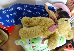 昨日、椅子を組み合わせて家を作った娘(幼稚園年長)は、自分の作った寝床が気に入って、家ではなくベッドに変更。「今日はここで一人で寝る」って言った。「分かった、じゃあ今日はここで寝るのね」って言ったら、「まだ分からないよ!」って大騒ぎ。自信が無いらしい。夜になって「今日どうするの?」って言うと「決められない」って言う。で、結局寝る前には、「1人でここで寝る」って言う。いつも同じ布団に入っても「抱っこして」って泣く娘。「抱っこ無しで寝れるの?」って言ったら、「ママが遅くて抱っこされないで寝たことある!」って得意気に言った。寝る前に、布団で息子(小学校6年生)と「スマなろアニメ」を見てると、娘がやってきた。「全然寝れない!」結局いつも通り抱っこして寝た。