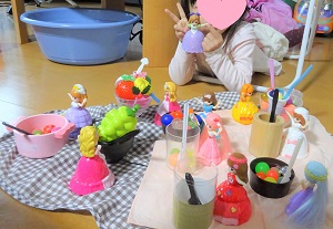今日の午後は、リカちゃんごっこ。あじさいリカちゃんが食事を振舞ってくれることになった。スープ、パン、そしてパフェ。パフェはなかなか可愛い感じ♪みんなの好みやイメージカラーで作った。特に気合入ってたのが、森ちゃん(左)、ゴージャス(右)そしてマリーゴールド。最後にジュースを作って終了。これだけで午後の時間が終わった。