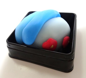 息子(中学校2年生)が美術で作った作品を持って帰ってきた。(実際に持って帰ってきたのは先週)春休み前で、学校から持って帰ってきた物の中にきれいな白い紙袋があって、何かと思ったら、作品とデザイン案などを書いた紙が入ってた。ポケモンの仲間?と思ったけど、透明な蓋もあることに気づいて、「和菓子みたいな入れ物に入ってるね」って言ったら、「それ、和菓子だから」って言われた。デザイン案には、テーマやデザインが書いてあったんだけど、和菓子だから季節を決めて作ったよう。息子は「小寒」を選んで、1月だから、大好きなスキーと正月らしさを表すため、水色のスキー板と、ポイントに正月の色の紅色を使って花を付けた。また、立体感を見せるために、スキー板はグラデーションを付け、花は描くのではなく、粘土を付けて立体にしている。テーマを決めたら、デザイン案を描き、実際に粘土を触ってみて、デザイン案の修正を書いて決定。息子は1回目に描いたデザイン案とほぼ一緒。デザイン案と最終デザインの間には、「②で決めたデザイン案は本当に製作可能でしょうか?粘土を触ったときに感じたことや、自分の技術力と相談してよりよいデザインを考えましょう。」って注意書きがあって、「本格感あるな」って思ったと同時に、「デザイン案は本当に製作可能でしょうか?」って問いが何だか笑えた。