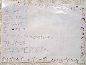 今日の夜は、息子(中学校2年生)の誕生日会の準備。誕生日会でやるザ・マインドの数字カードを作ったり、飾りつけの確認をしたりした。娘(小学校2年生)は、学校に行く前にプログラムを作ってた。「3月って桜だよね?」って言われたから「そうだよ」って答えた。何をするのかと思ったら、プログラムの紙の縁を桜のパンチで穴を開けてた。今日は誕生日の飾り付けまで終わらせて明日、当日を迎えることになった。これだけ余裕なの、珍しいと思う。